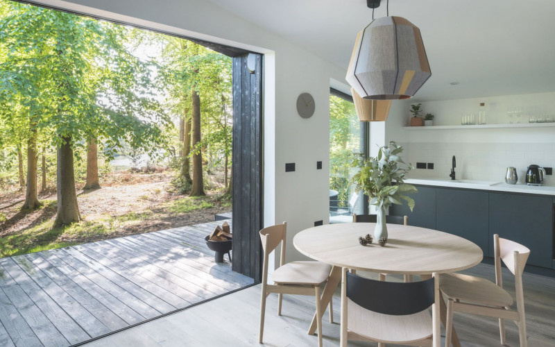“The space has been thoughtfully designed to enjoy the sanctuary of Fritton Lake, celebrate the simple pleasures of life, relaxing on a sun-soaked deck with a book or enjoying the view through the expansive openings.”